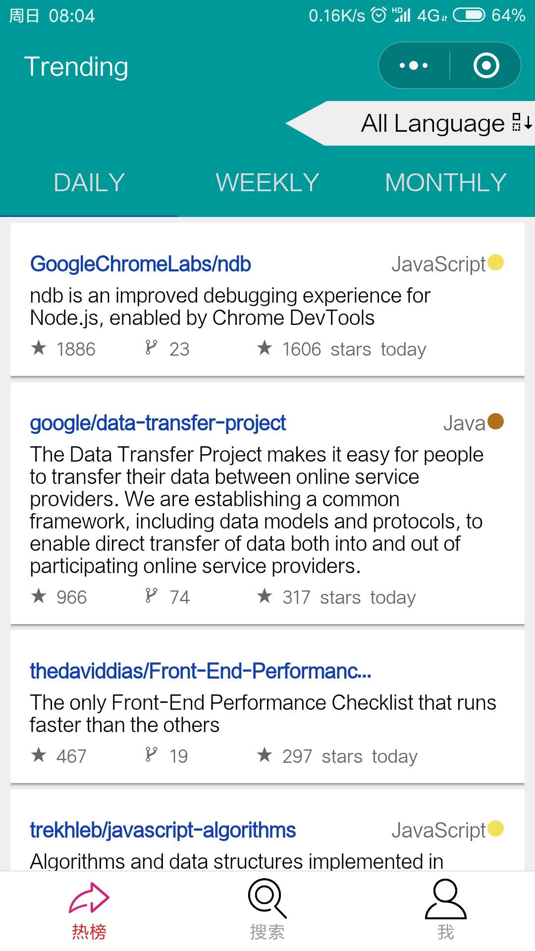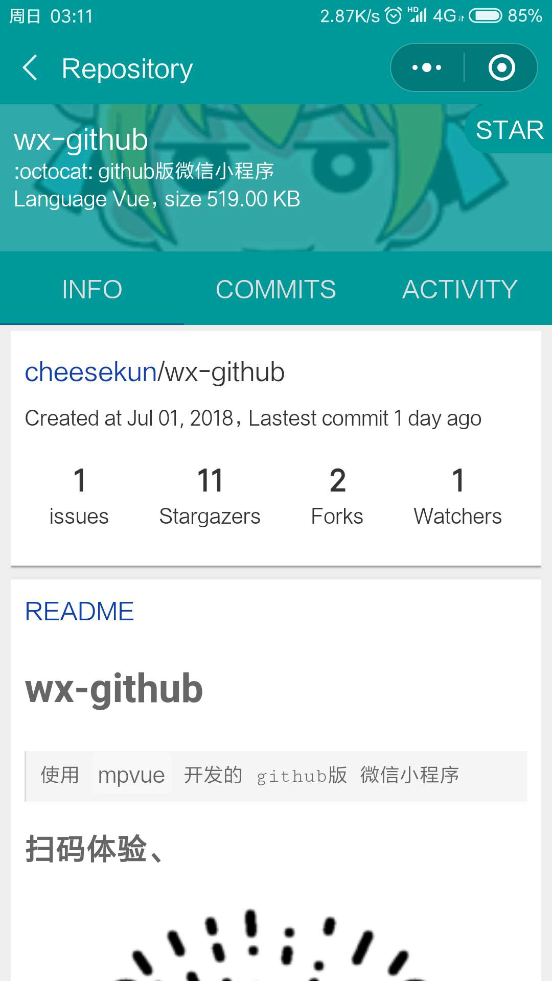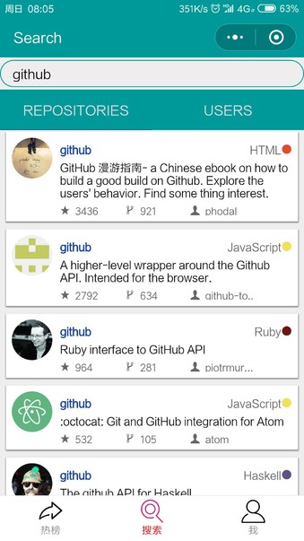 国内功能最齐全的github小程序。可看每日排行榜,用户与仓库检索,信息查看。 已登录用户可对仓库进行star,对其他用户进行follow操作,浏览好友的最近动态。