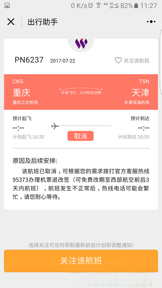 西部航空——海航集团成员企业,Skytrax评选“中国领先低成本航空”——荣誉出品,服务体验再升级。官方航班动态权威发布。官方防诈骗,一手精准信息早知道。便捷查询当日航班动态,一键关注航班可免费获得一线精准不正常航班调整通知短信信息,更多功能敬请期待。
