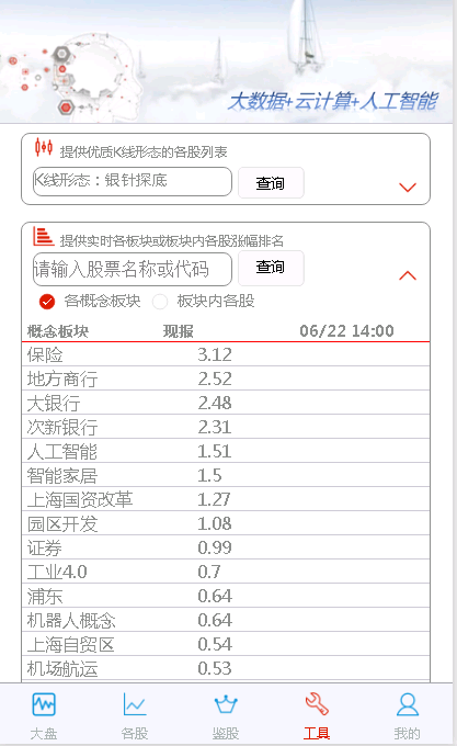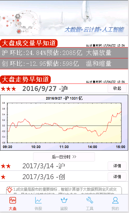 人工智能都能干啥?下围棋吗?大材小用了吧。现在告诉你,人工智能还能炒股。 大数据+云计算+人工智能让股市资金操作路径无所遁形。贪婪狡诈的资金主力就算你会72变,也变不出人工智能的手掌心。 历史总是惊人的相似,主力的操作手法无非几种。通过大数据的历史分析,Ai鉴股可以做到,见其来龙,知其去脉。为您投资收益提供稳定帮助。