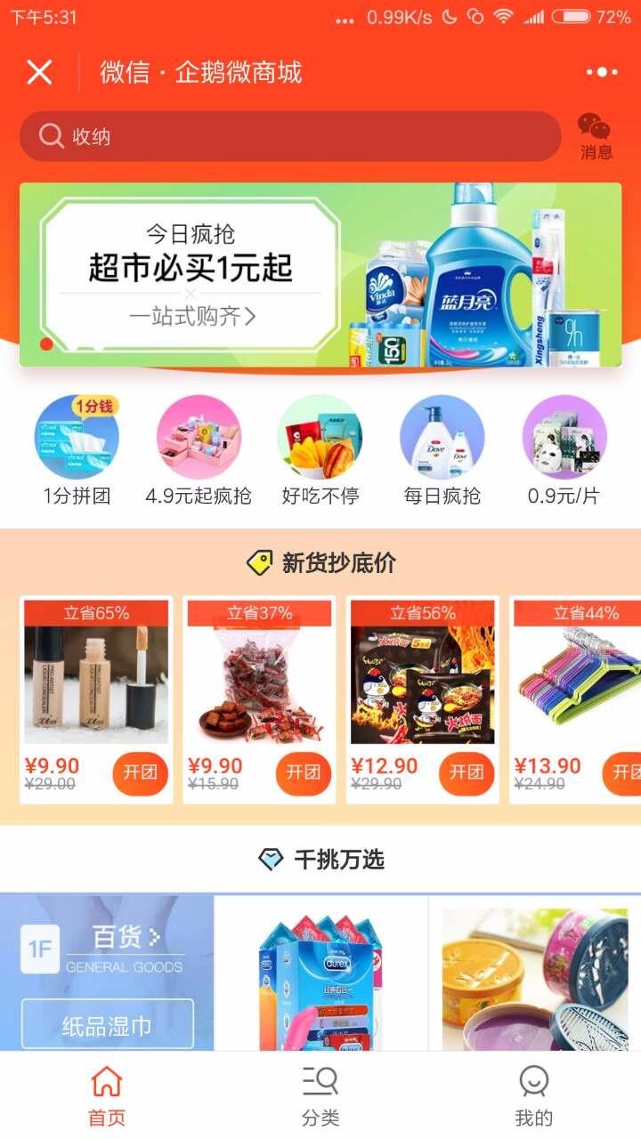 食品粮油、生鲜分享、家居百货,尽在企鹅微商城