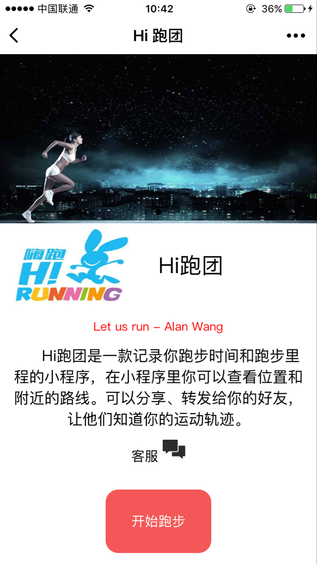Hi跑团是一款记录你跑步时间和跑步里程的小程序,在小程序里你可以查看位置和附近的路线。可以分享、转发给你的好友,让他们知道你的运动轨迹。
