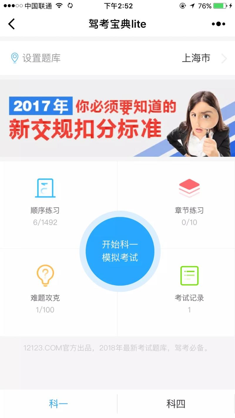 12123.COM网站出品的模拟驾考小程序,2018年最新交通考试题库,新车主首选!