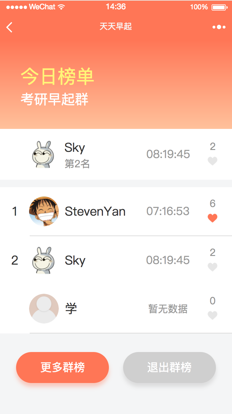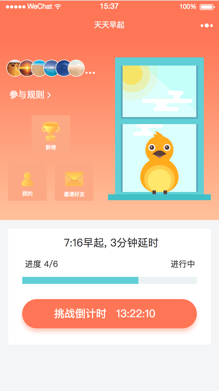记录自己的早起时光,查看早起群排名。为自己制定合适的早起小目标,助你养成早起好习惯!